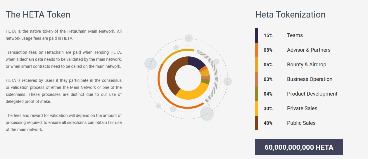 The Hetachain ecosystem consists of smart contracts, Hetacoin, hot and cold Heta Wallets, Heta App Store, Blockchain feature-enablers and comprehensive solutions that enhance its applicability in smart banking, healthcare, e-commerce, trade, telecommunications, data management, investment, cash exchange, and remittance.