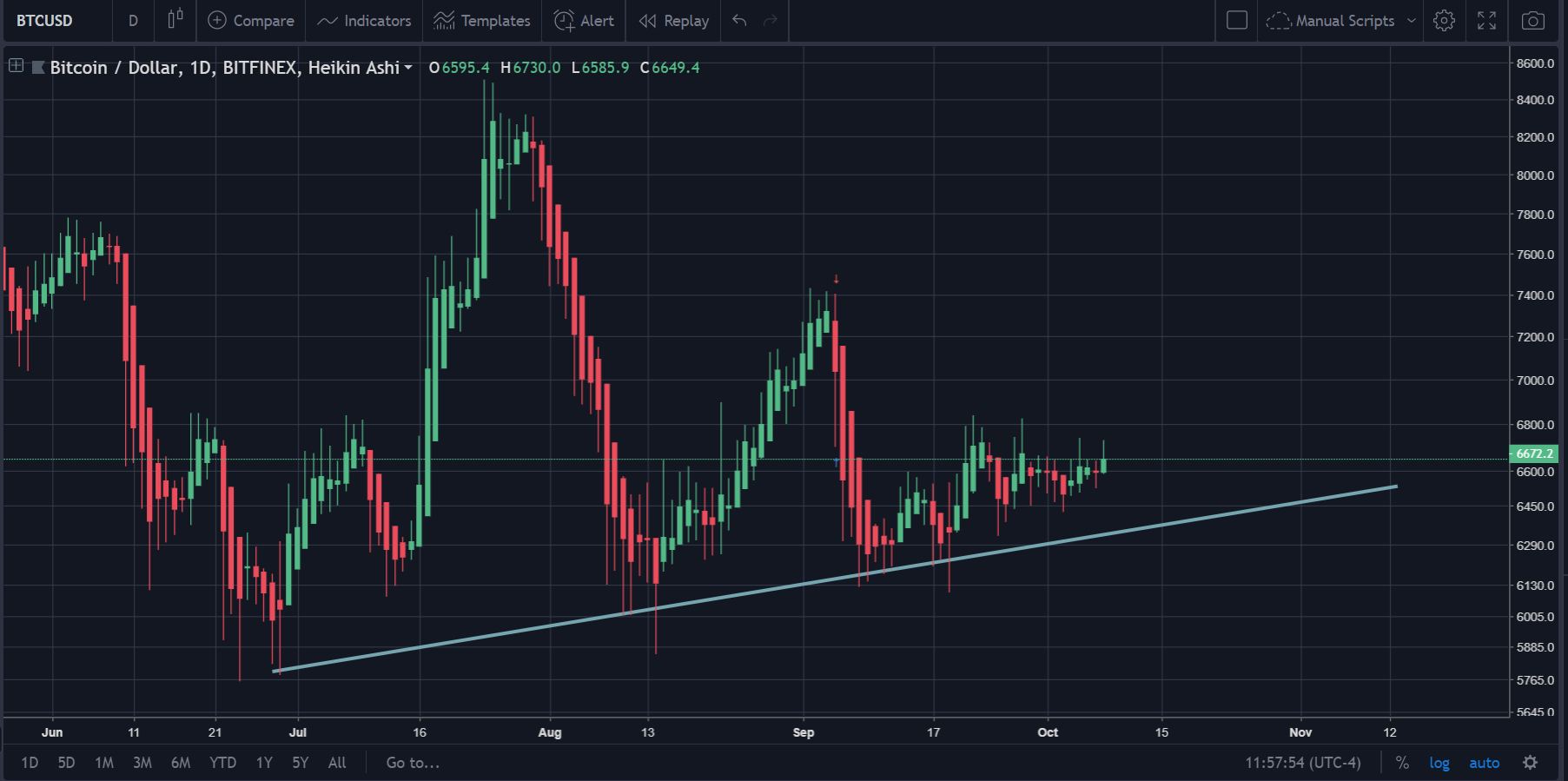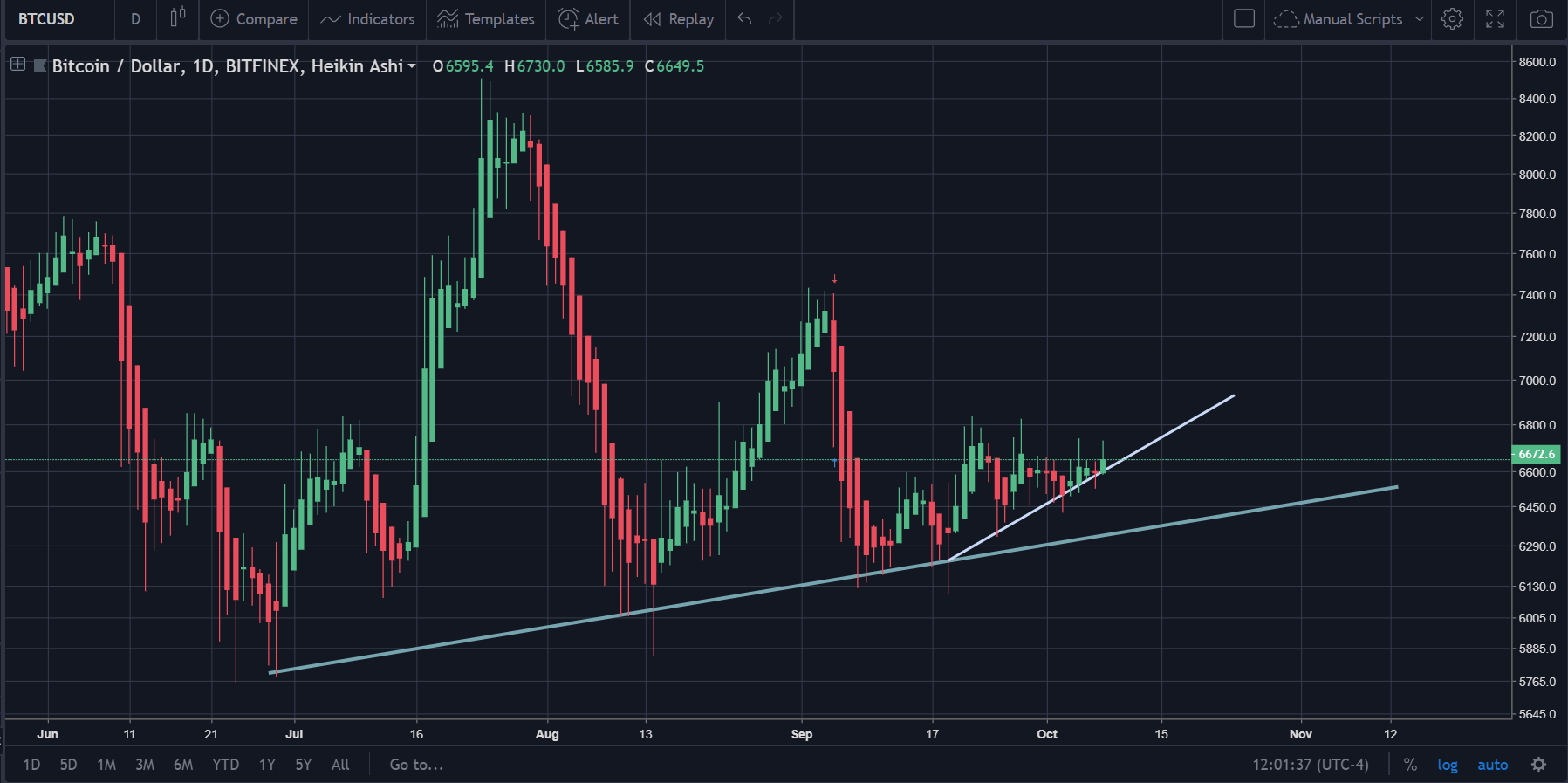 Currently, Bitcoin is trading between the range of $6.2k to $6.7k.