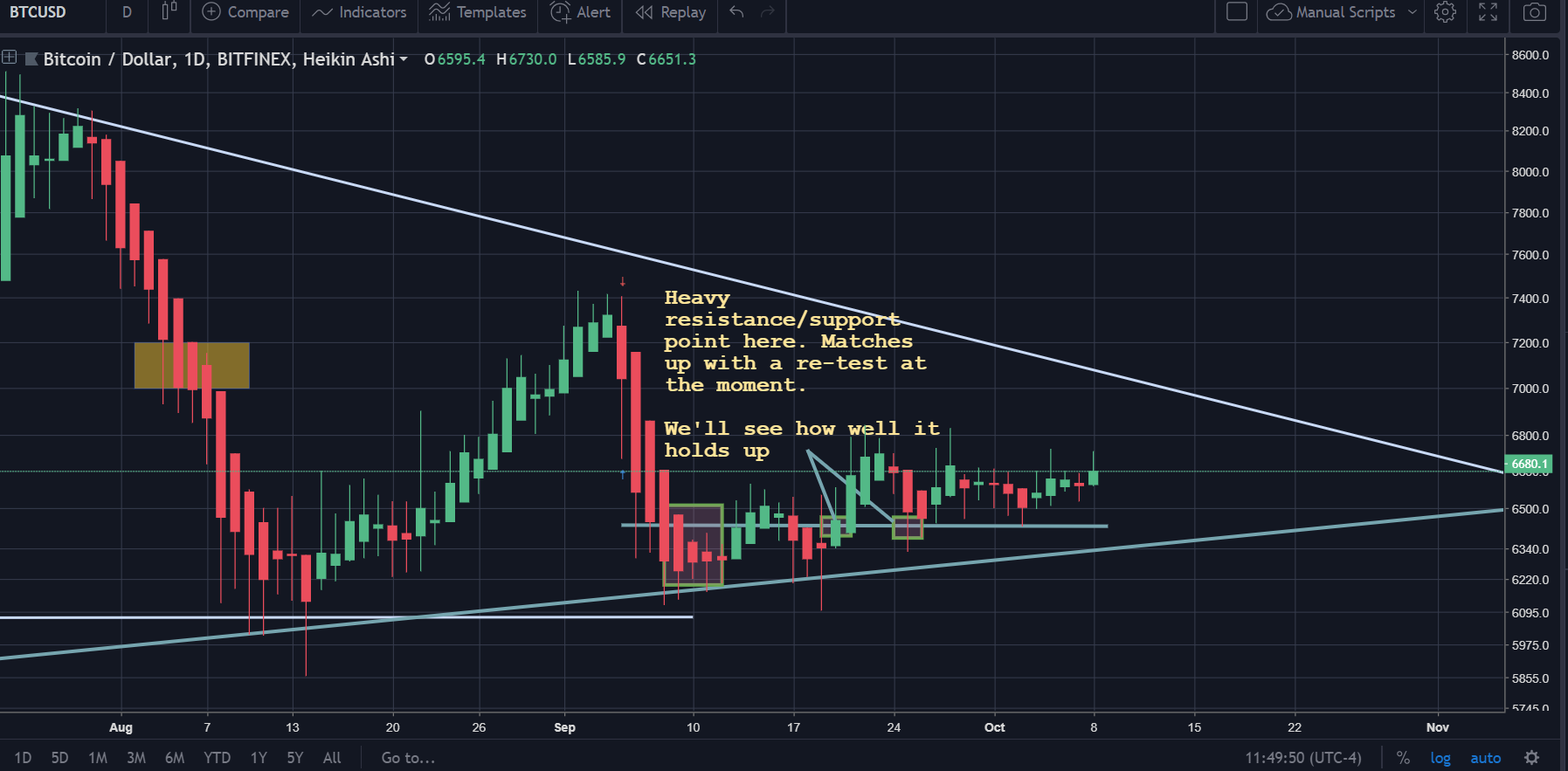 Currently, at the time of writing, it is trading at $6,680, which is at the higher end of the range that it has traded in during the past few weeks