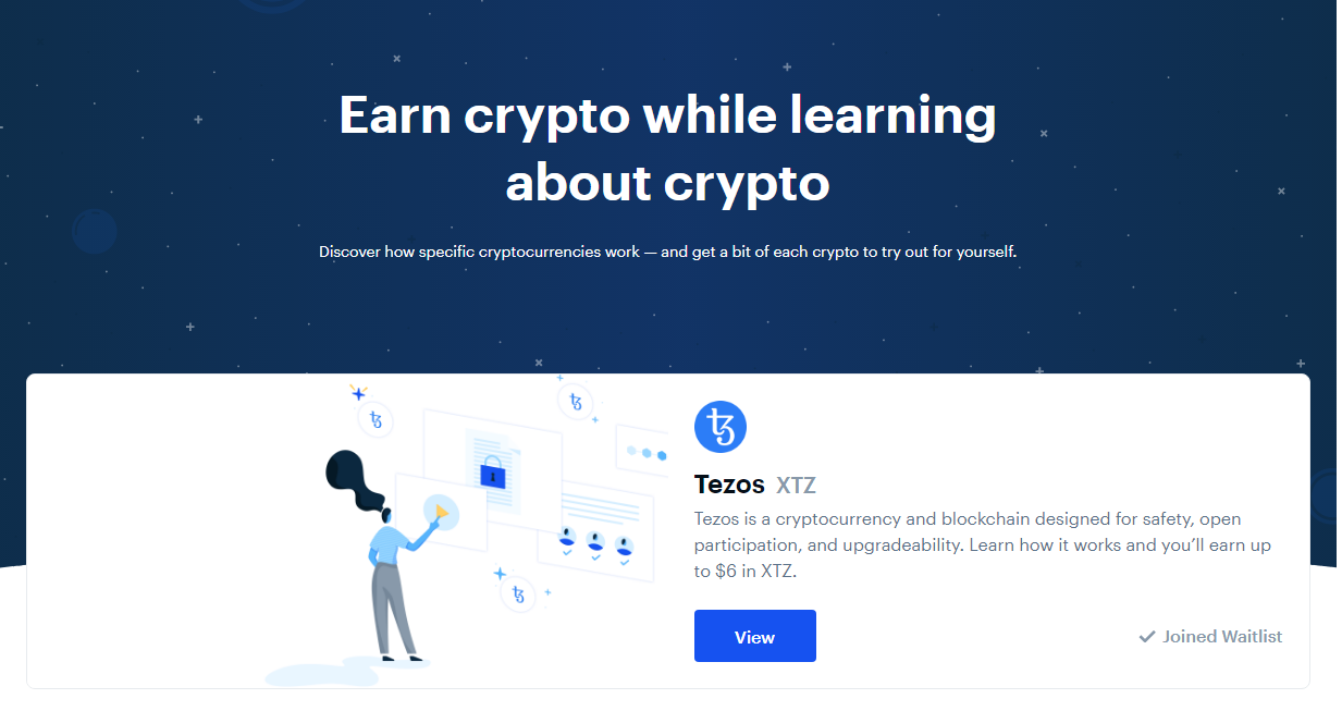 Apart from adding the staking rewards, Coinbase has also enabled it's users to earn Tezos (XTZ) through its Coinbase Earn Program.
