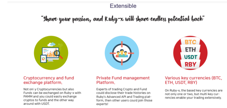 Moreover, Ruby token (RBY) can be traded with other key currencies (ETH and BTC) in Coin-to-Coin Exchange markets.