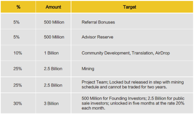 The total of 10,000,000,000 ESOex Proof (EXP) tokens will be issued, and it will be issued among Private Sale Investors, the Project Team (locked up), and among the EOSex community.