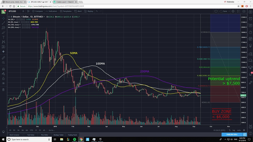 In this STEEMIT post I will be giving my reasons why I am still waiting for BITCOIN to drop below $6,000 before buying MORE. All are opinions and my own ideas and should not be taken as credible investing advice. (09/12/2018 8:00 PM CST)