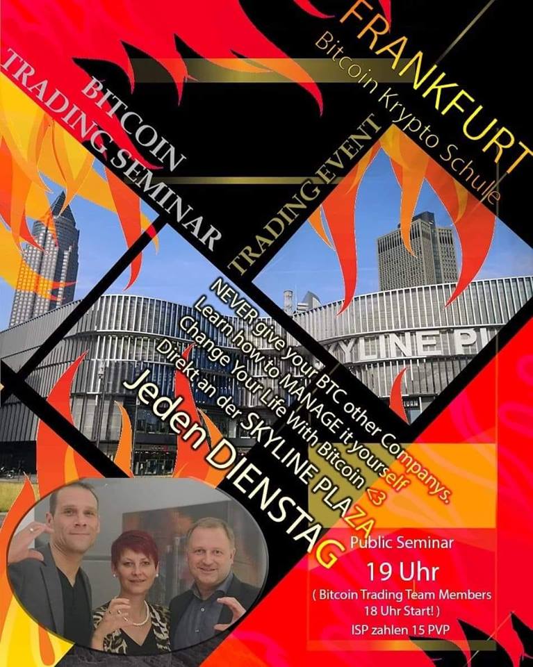 BitcoinTrading Event Frankfurtpeggypow (25)in #bitcoin • 8 years ago Frankfurt. Champs are born in Frankfurt too. Special thx. 🤩🤗 wir kommen wieder. Bitcoin-Seminar Immer Dienstags in Frankfurt Anmeldungen unter: hss.traffic@gmail.com www.BitcoinSafe4You.info #trading #hybridriders #altcoin