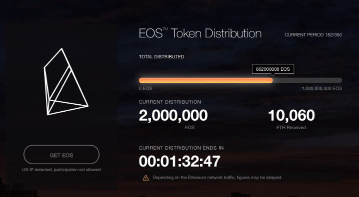The EOS token sale was one-of-a-kind .It took place over a full year , starting June 26,2017,with 350 period of destribution . At the end of each period , the total number of tokens designed for that period