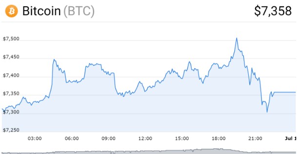 Bitcoin trading activity was actually quite dynamic, but the price eventually returned to a level similar to where it was 24 hours ago, as BTC’s 24-hour change is currently +0.5%. Bitcoin reached a peak of $7,500 for a very brief period of time, but was met with a rejection that took the price down to a daily low of about $7,300. Since other high market cap coins dipped slightly, BTC dominance increased further and is currently standing at 43.3%.