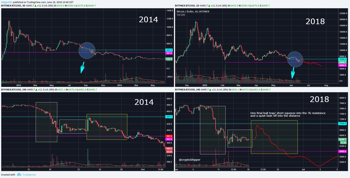 2014 bitcoin chart and 2018 bitcoin chart... similarities!steemCreated with Sketch.rajaz (38)in #bitcoin • 8 years ago 2014 bitcoin chart and 2018 bitcoin chart... check out the similarities before longing! Credits: shippr021 #crypto #blockchain #coin #bullrun