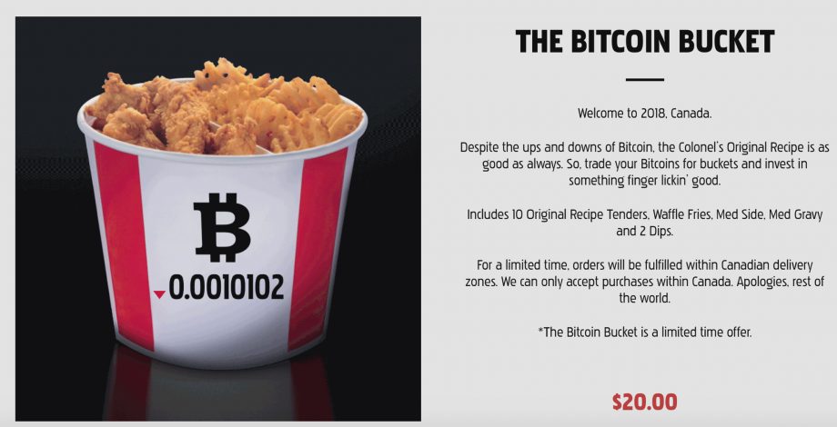 Speaking about food “The Bitcoin Bucket” was a great success, you get pieces of tender juicy chicken with some fires for worth $20 of BTC. Which I guess was a great deal but unfortunately, it's not in the market anymore because it was a quick sold out. Similarly, the subway also accepts bitcoins.