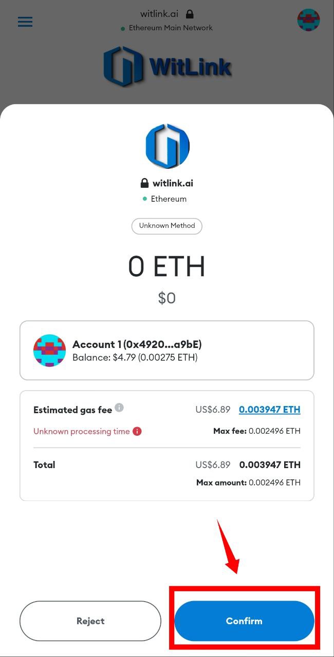 Step 7: Pay "ETH" Tx Fee to claim token and then Confirm