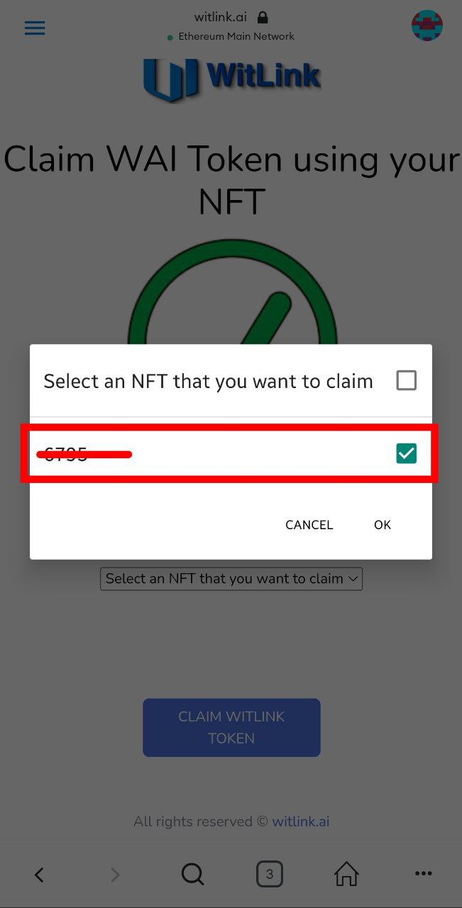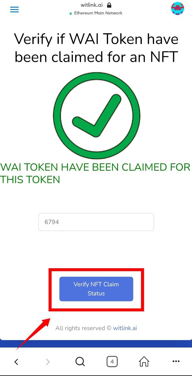 After that you will get a notification above in which there'll be written that WAI token has been claimed or not on this NFT token.