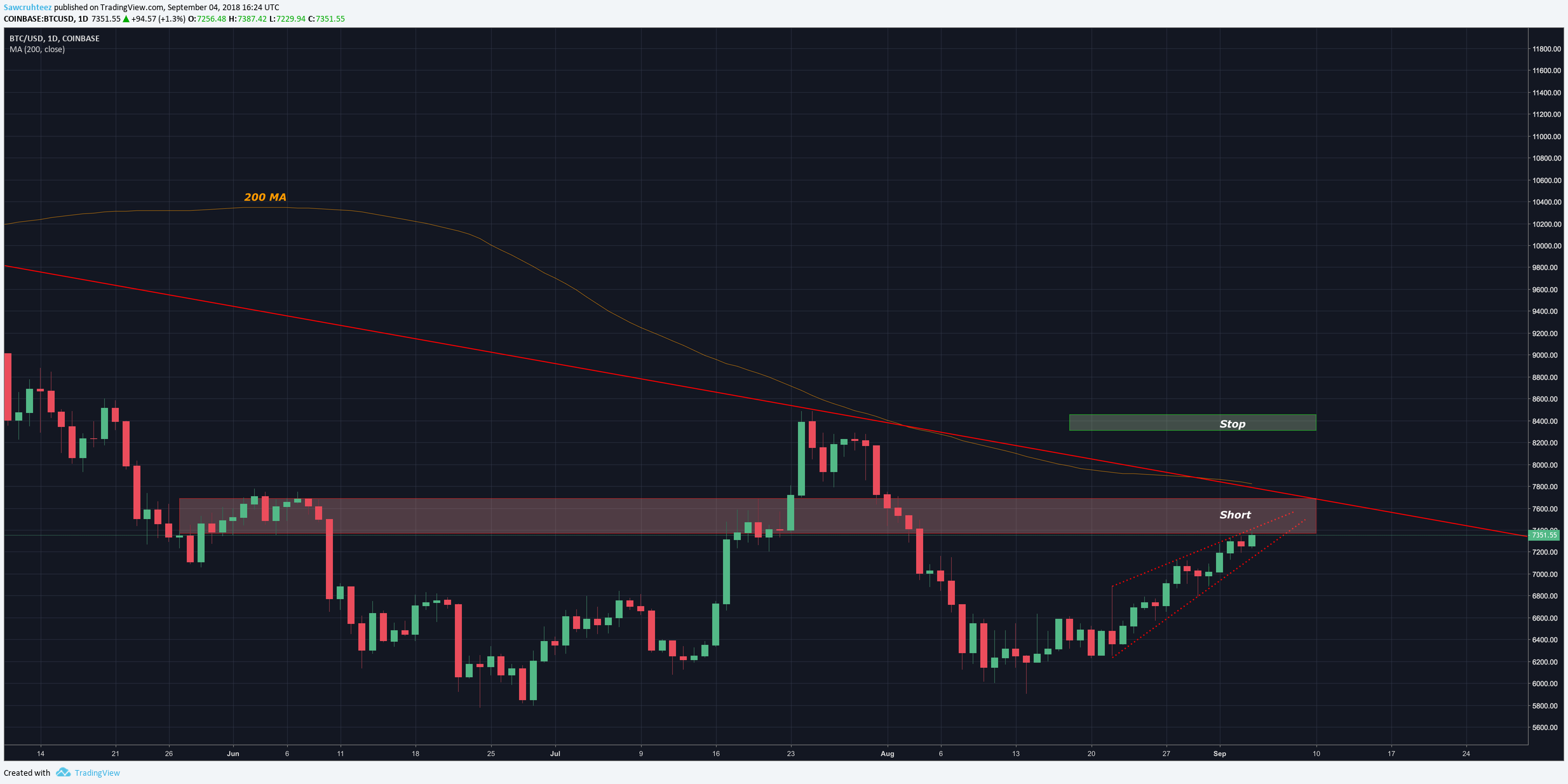 The calm before the storm is often the best time to build a position. Selling the current area of resistance provides a great risk:reward. Shorting alts is a better option as they continue to show more signs of weakness than BTC.