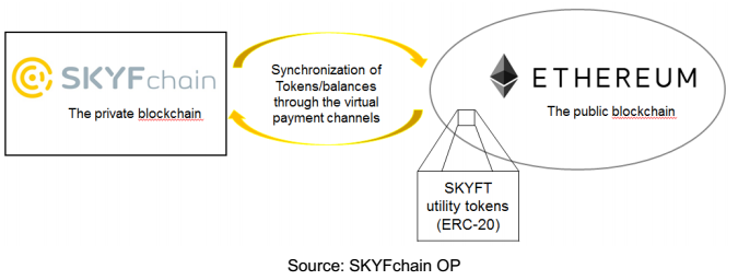2.Ethereum ERC-20 SKYFT tokens-based perimeter of public blockchainfor processing and settling SKYFT tokens transactions and communicating them back and forth with SKYFchain.