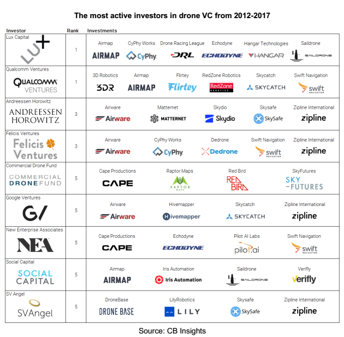 The broad adoption of droneshas becomea mainstream inthis decade. Q1'2016 investmentsinclude: Airware($30mln),Skydio($25mln), andDelair-Tech($14.5mln). DJI wasone of the first drone companies with confirmed a Mcap of $10bn. The investors'spectrum is diverse and includes leading global business companies.