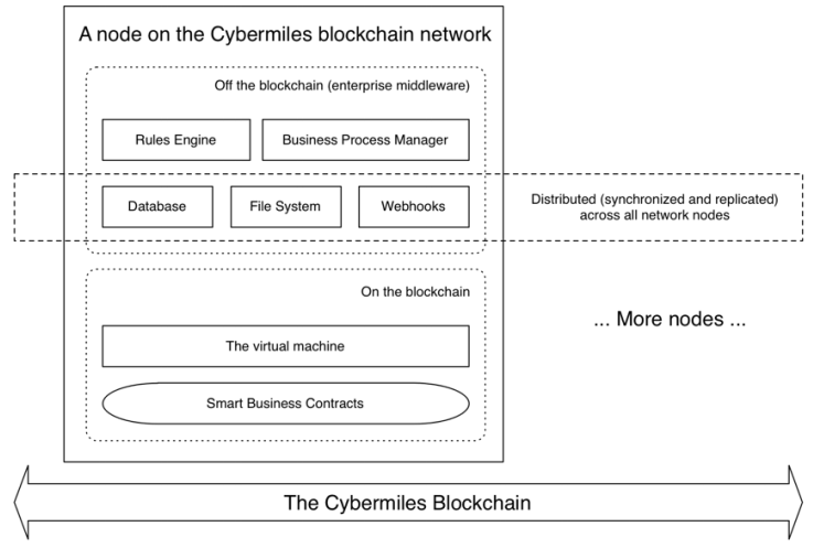 В CyberMiles значительная часть компонентов находится за пределами блокчейна. Только результаты вычислений записываются в блокчейн и выполняются вне блокчейна.