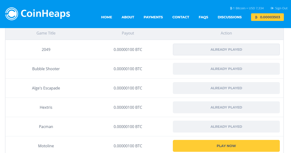 Playing games for about 2mn gives you 100 satoshis, knowing that you have the right to play 6 games a day. At the same time, you can get point for captcha mining which also allows a maximum of 6 times of recaptcha solving after collecting points everyday you could reach till 50$ !! And not only does it reward you with points it also gives you some satoshis just by captcha solving.