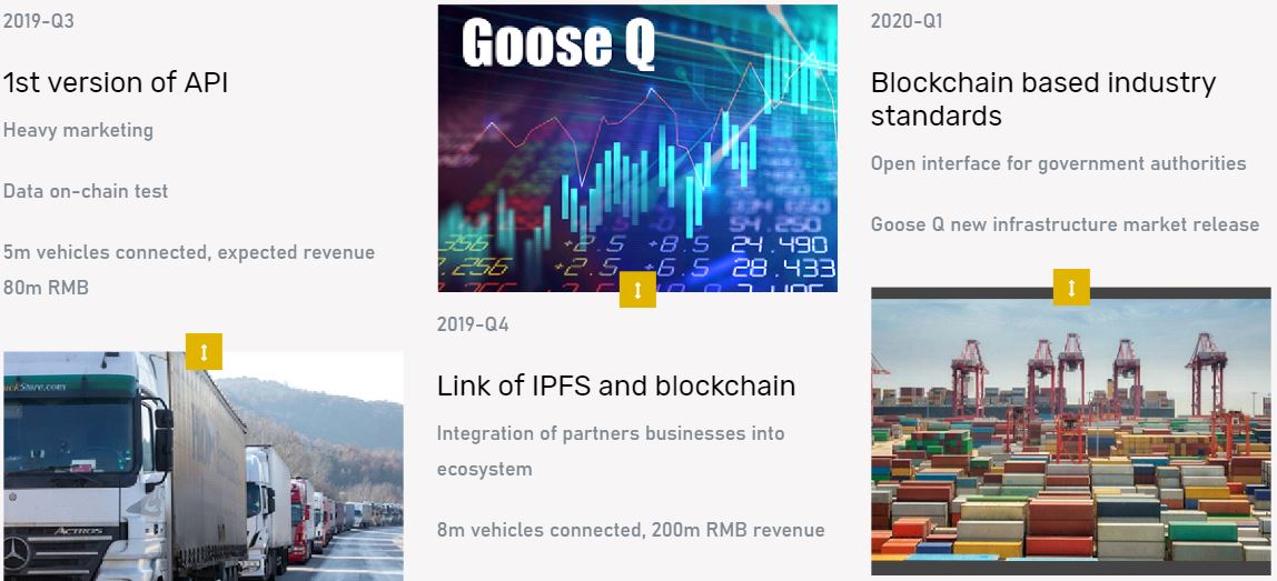 The initial model of Goose Q interaction, which uses decentralization on the blockchain, immutability and other features, to build a program that can combine increasing and decreasing funds everywhere in the logistics branch, and existing logistics IT companies do not just have no competing relationships, on the contrary, they able to work together on the accumulation of information and services in order to fully engage in the logistics industry.