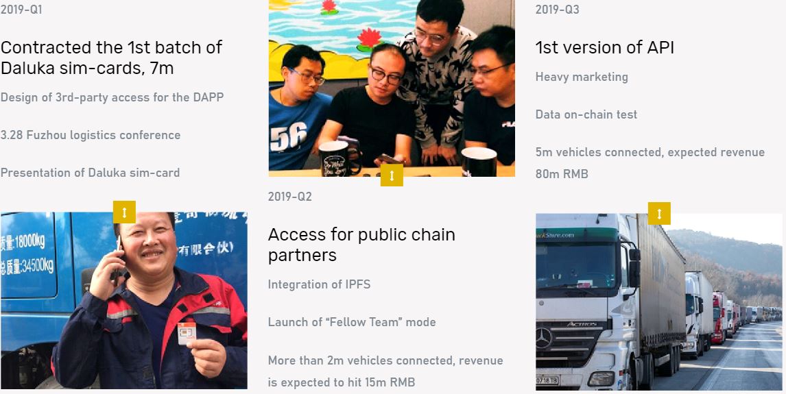 In order to increase driving safety and reduce the number of traffic accidents, Goose Q brings together a large number of non-hazardous driving algorithms that analyze a large amount of environmental information and give users group offers of non-hazardous driving. In partnership with China Unicom, China’s leading provider of telecommunications offers, Goose Q is launching Daluka SIM cards, which were created on purpose for truckers. With a Daluka SIM card, it’s possible to use a bunch of logistics and entertainment apps for traffic consumption for free. Thus, Goose Q has the opportunity to collect a giant base of users to collect data and solve one of the key tasks of the logistic branch - the inaccessibility of data to control the scam in the accounts. Goose Q is eager to be a pioneer and favorite on the blockchain for the logistics branch.