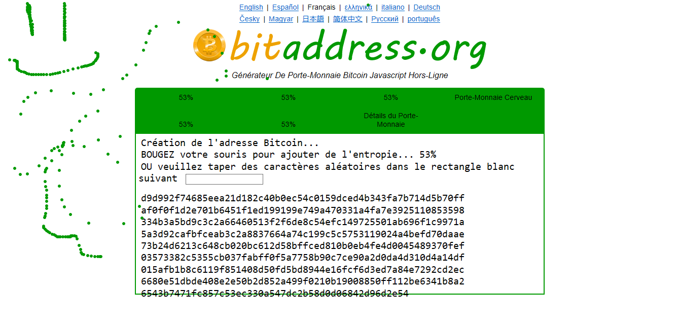- la clef privée (private key) : pour retirer vos Bitcoins (cette ligne de code doit rester secrète et ne doit pas être perdue)