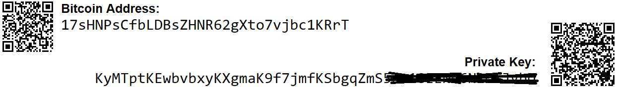 Généralement, un portefeuille papier pour Bitcoin ressemble à cela :