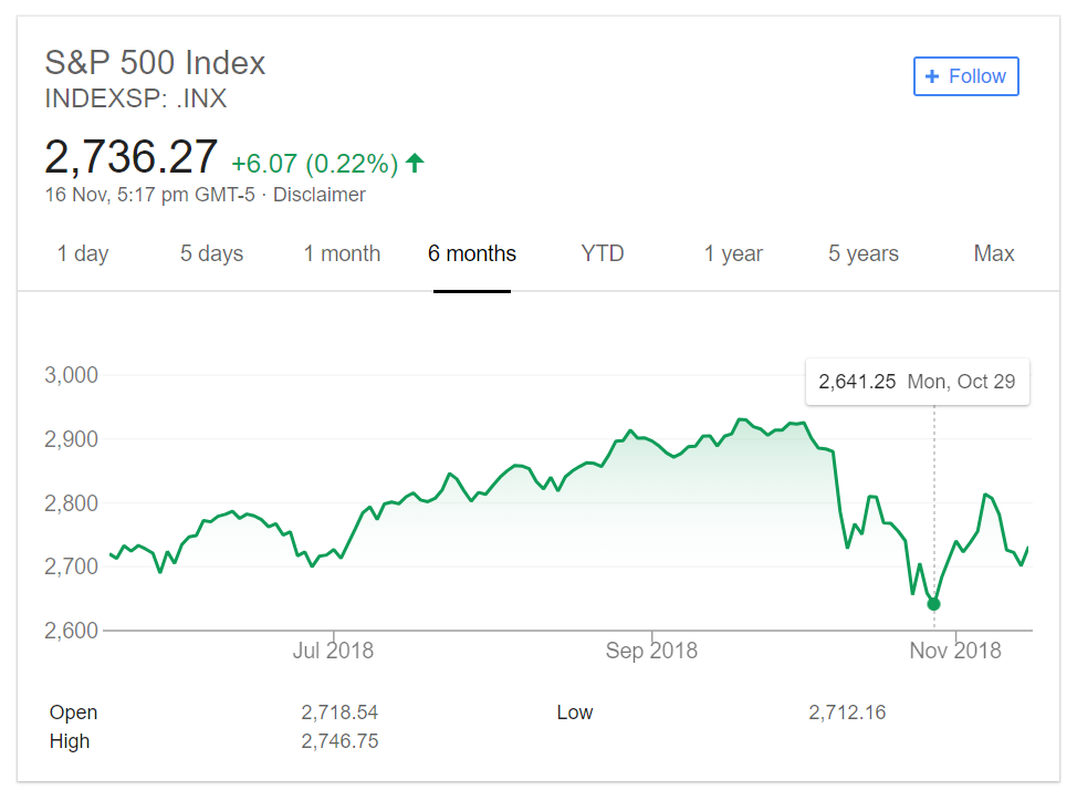 However, it would have been no surprise for financial market corrections as we have witnessed several drops in the past month. In the past month, the S&P 500 Index plummet approximately 300 points, down from 2923 on 3rd Oct 2018 to 2641 on 29th Oct 2018.