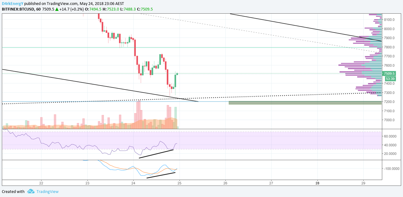 Comment: So we got a decent bounce just above 7,200 USD. The question is it enough, and do we have enough buyers to follow up on this.