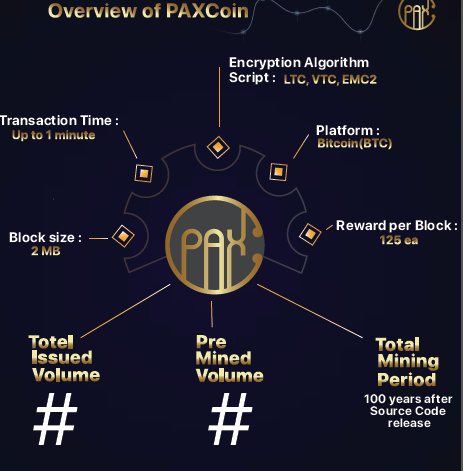 A virtual asset PAX Coin relates to the link of virtual money 2.0, the link where encrypted currency contributes to constant life. Virtual money 2.0 incorporates the modern technology of block chain to let reliability, time and expense saving in many transactions such as inter-nation, inter-corporation, interpersonal and intercompany. The PAX COIN has the most excellent reliability and security and is the finest virtual money (Asset) that does not need any sort of asset or money exchanges among companies, corporations, individuals and nations via the establishment of payment - completion structure.
