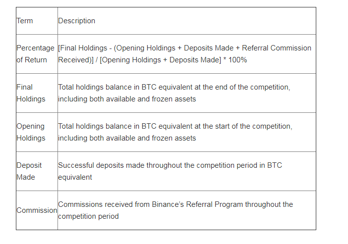 Deposits and referral commissions received during the competition period will not be included in the calculation. However, returns resulting from new deposits will count towards your final return calculation.