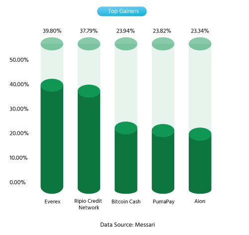 -> Bitcoin Cash — BCH turned out to be one of the best performing cryptos over the weekends. As the average transaction fee on Bitcoin surged, Bitcoin users could have preferred BCH where the average fee was $0.0047 compared to around $2.47 for Bitcoin transactions