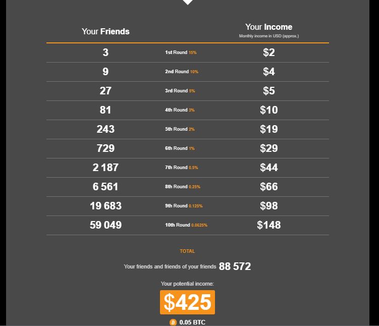 1-Referrals usual habit and you can calculate your income depending on how many referrals you can get.