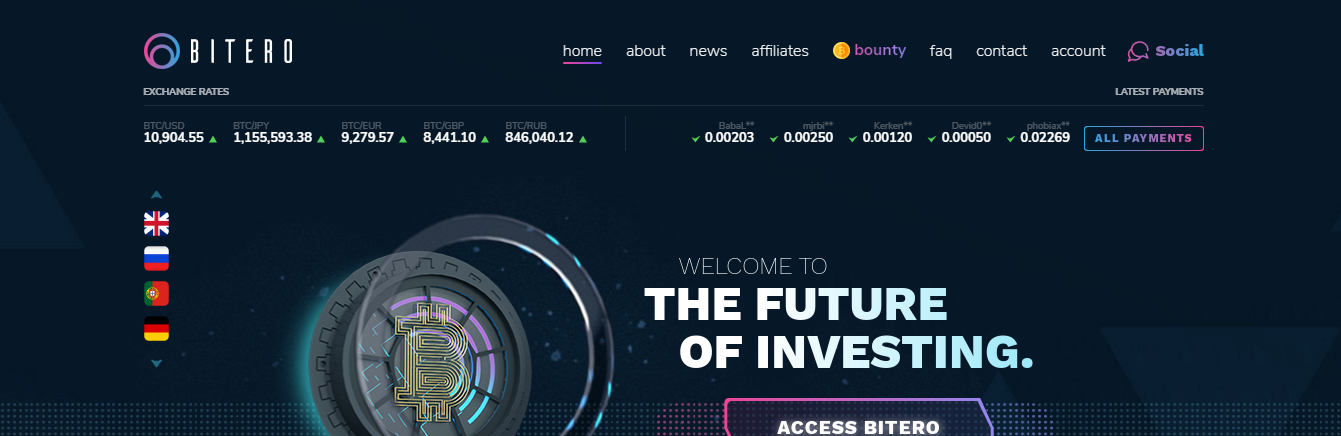 My friends advised me to join to this wonderful site it is bitero, so I registered with it and tried it. It is really wonderful. It has great investment plans that you can benefit from. It also has a wonderful referral system. You can also invite your friends and take advantage of it. It also contains a bounty system that enables you to carry out some tasks and also profit from the site.