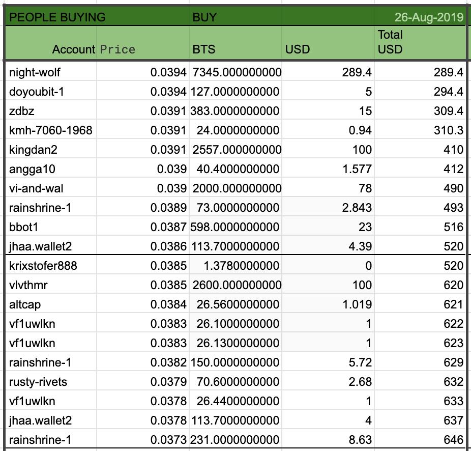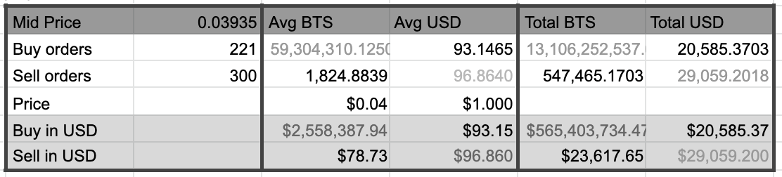 For the second 10 buy orders out there, 327.19 BTS for 12.54 USD or about $14.11.