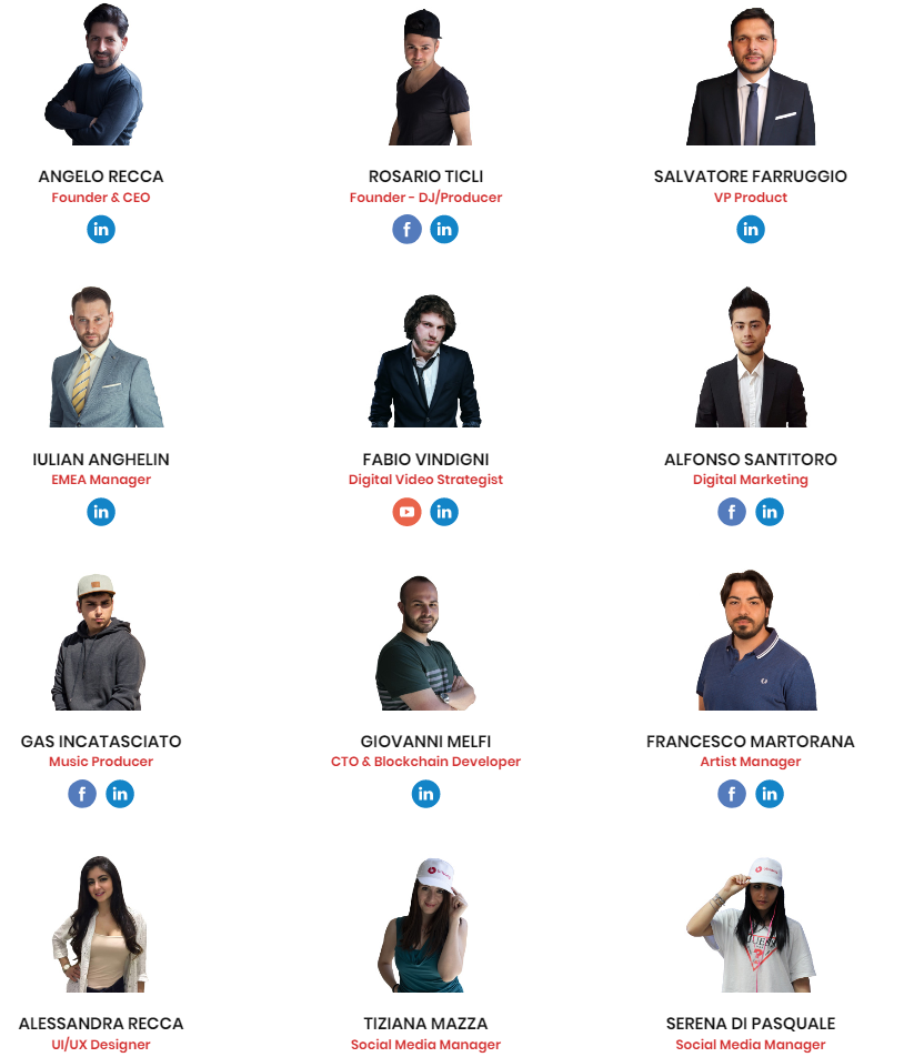 Кроме менеджеров, разработчиков, блокчейн-технологов в состав команды входят музыканты. Эти люди прекрасно знают трудности и проблемы исполнителей, поэтому их вклад в развитие платформы нельзя недооценивать. Команда проекта имеет сильный состав консультантов и советников, имеющих огромный опыт и большое количество успешных проектов за плечами. Среди них стоит отметить Николая Шкилева, Владимира Никитина, Богдана Филура, Рубена Годфри.