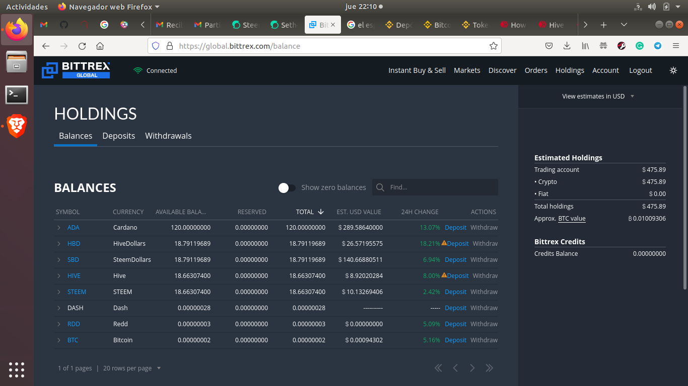 Recomiendo no hacer Trading en @bittrex si me devuelven el dinero quito el anuncio, aqui la Foto de mi Cuenta: