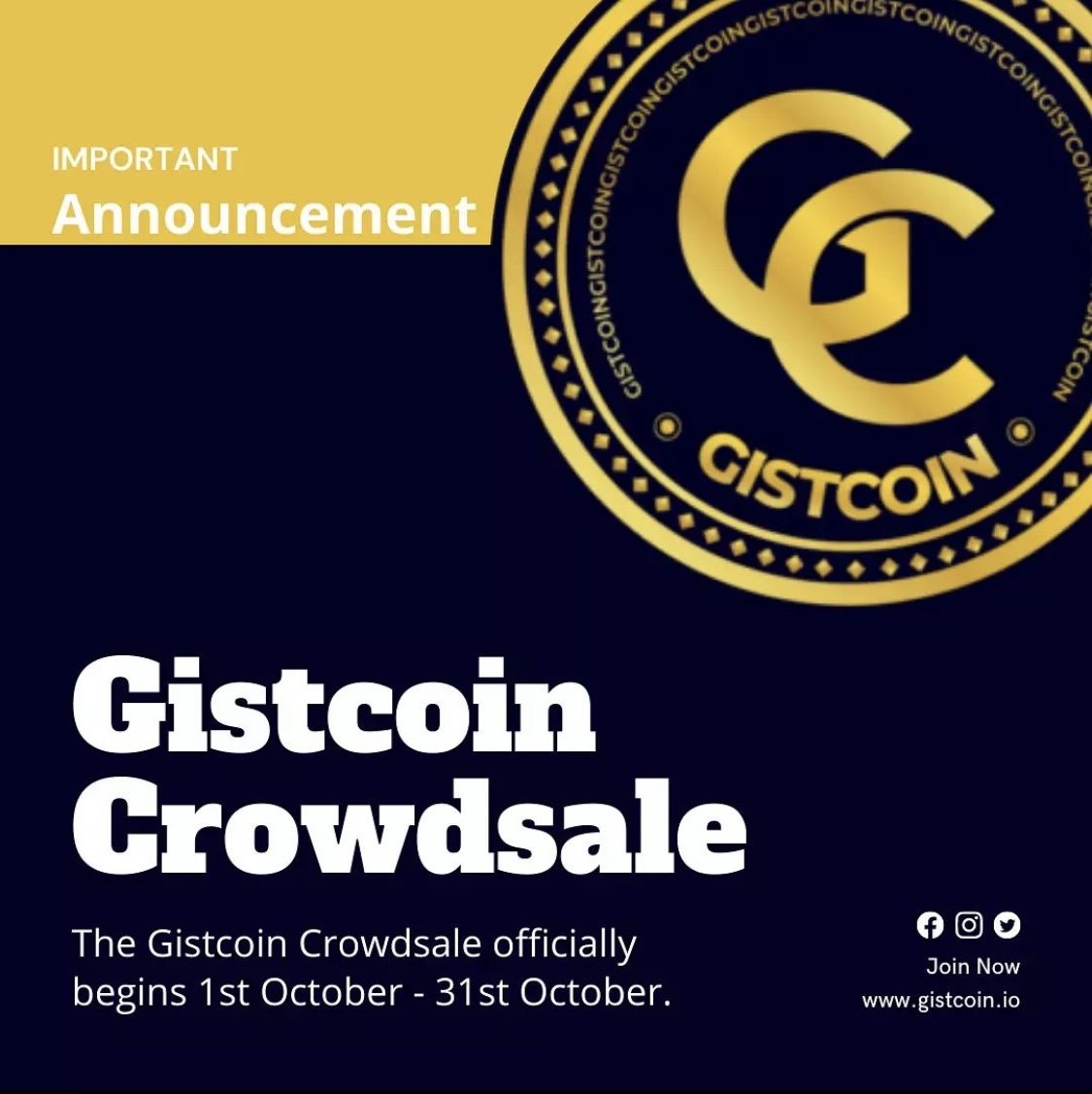Gist coin will hold a crowd sale this will give investors and crypto enthusiasts the opportunity to be part of the platform by investing into it .