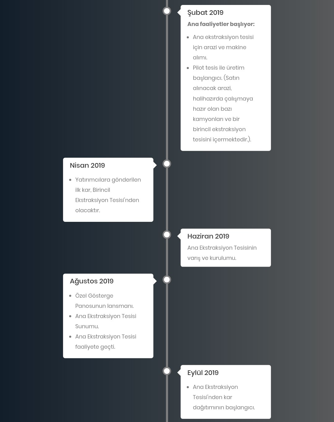 Yatırımcılara ilk karların teslim edilmesi. (İlk kar, pilot tesisin üretim karından dağıtılacaktır)