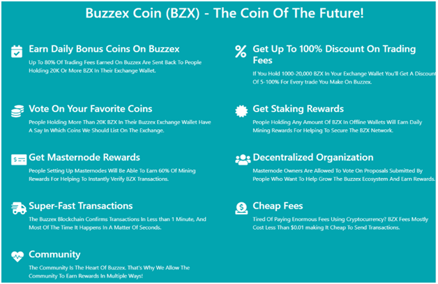 BZX are utility coins built on its own blockchain, which can be used for various things inside the Buzzex Platform and outside of it.