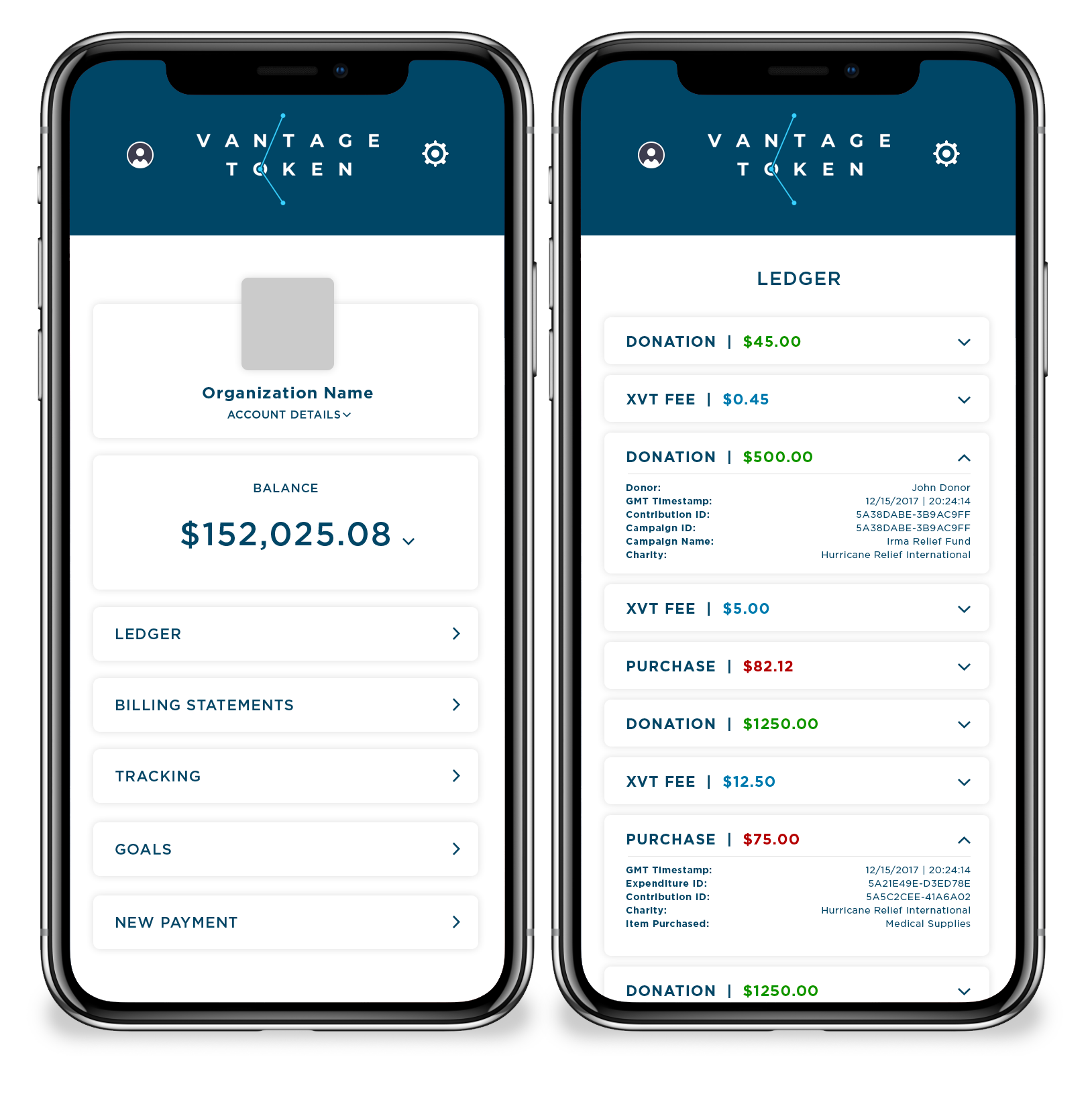 Bağış yapılan kuruluş, Vantage hesabında bağışı alır ve Vantage Mobile Pay uygulaması aracılığıyla bağışları harcar.Bağış kullanarak yaptıkları her satın alma işlemi, NEM Blockchain kullanılarak Vantage Network üzerinde takip edilir.Katılımcı, bağışlarına bağlı tüm işlemleri görmek için Vantage Network Portalında izleme kimliğine girer ve genel kampanya fonu kullanımı raporunu alır.Ve bağışçı için tüm durum takip edilebilir halde kalır bu da gerçekten bir çok kişiyi rahatlatacaktır.