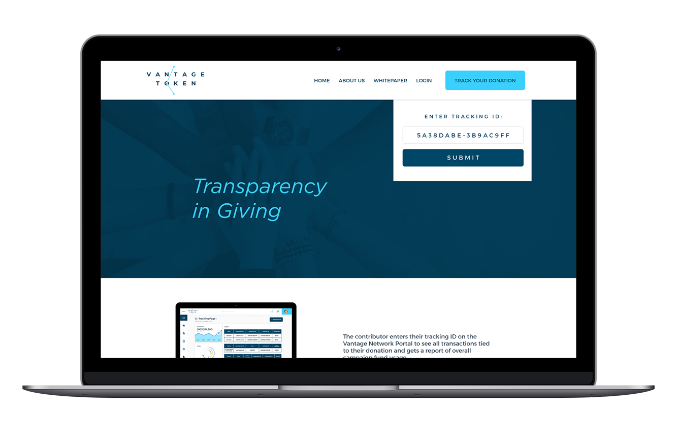 Katılımcılar, Vantage Network'ü kullanarak kar amacı gütmeyen bir kuruluşa kredi kartıyla bağış yapar.Katkıda bulunanlar, bağışlarının bir paketin takibine benzer şekilde kar amacı gütmeyen kuruluş tarafından nasıl harcanacağını izlemek için kullanabilecekleri bir bağış kimliğini alır.Yapılan bağışın takip işlemi bu şekilde gerçekleşiyor.