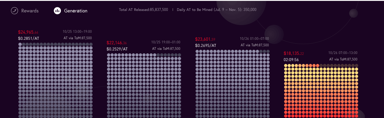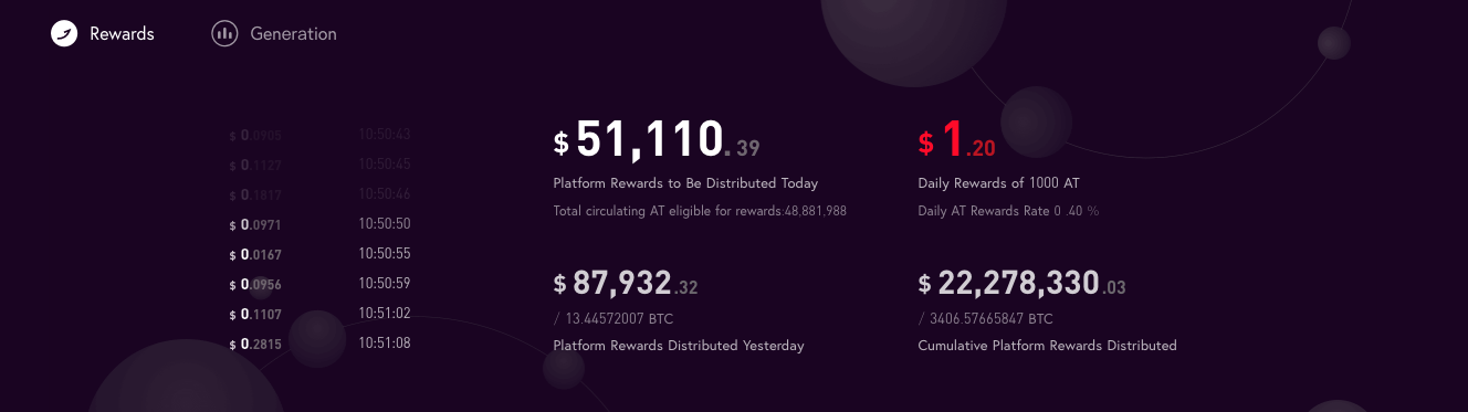 On the main page of the site, statistics on the AT token is shown. In the screenshot below, we see that approximately $ 1 per day will be received by holders of 1000 AT tokens.