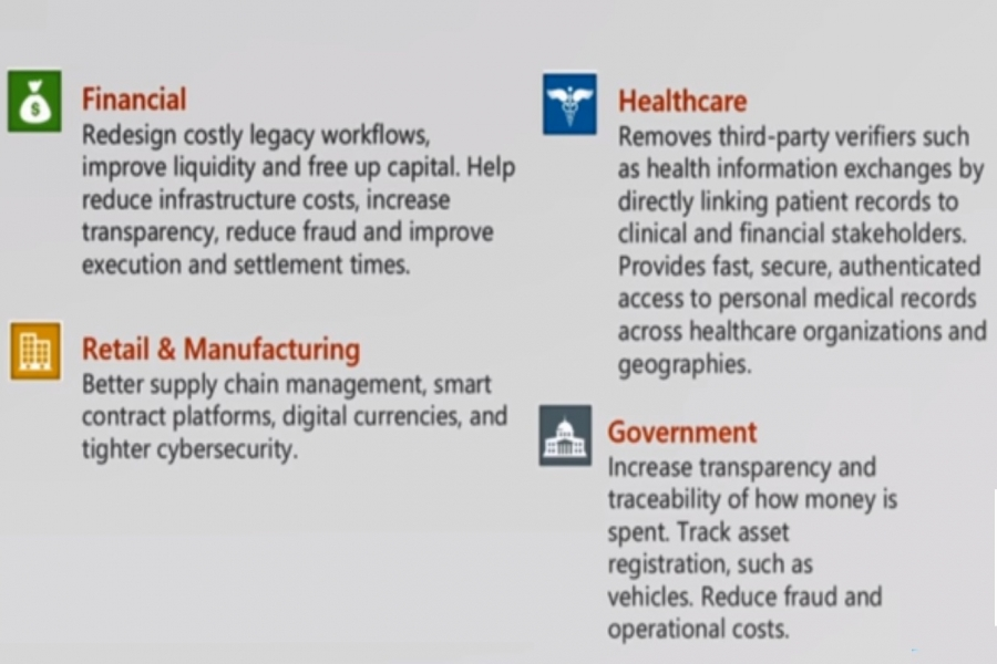 Although the usage of blockchain outside crypto currency is being implemented slowly, there is a long list of use cases of the technology in various industries. These include, but are not limited to, credit checks, recording patents for medicines, sharing contracts between semi-trusted organisations, ensuring compliance with regulations, etc.. The common feature in all of these scenarios is that the technology allows sharing of sensitive information at a low cost without any centralised hackable repository or a middleman.