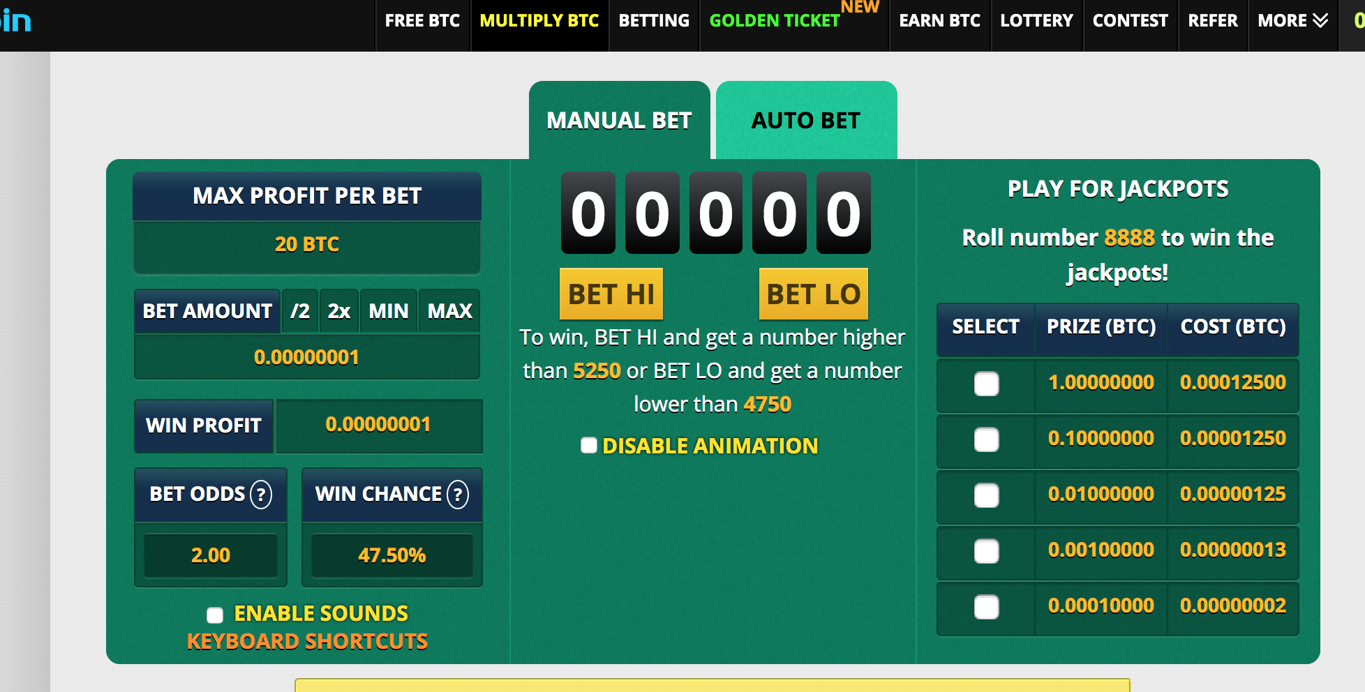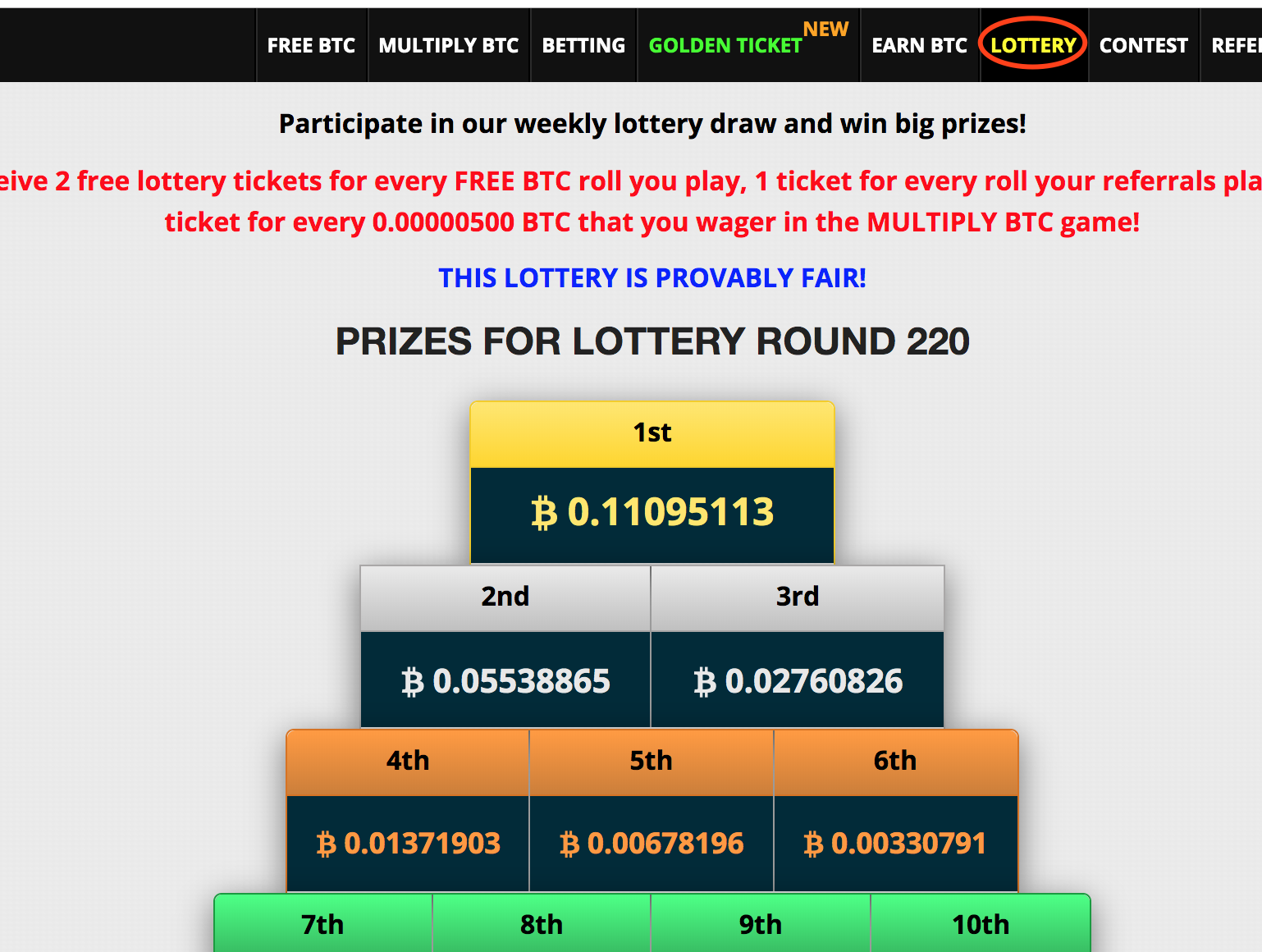 If you want to increase your chances of winning, you can roll a few times, or buy a lottery directly with BTC.