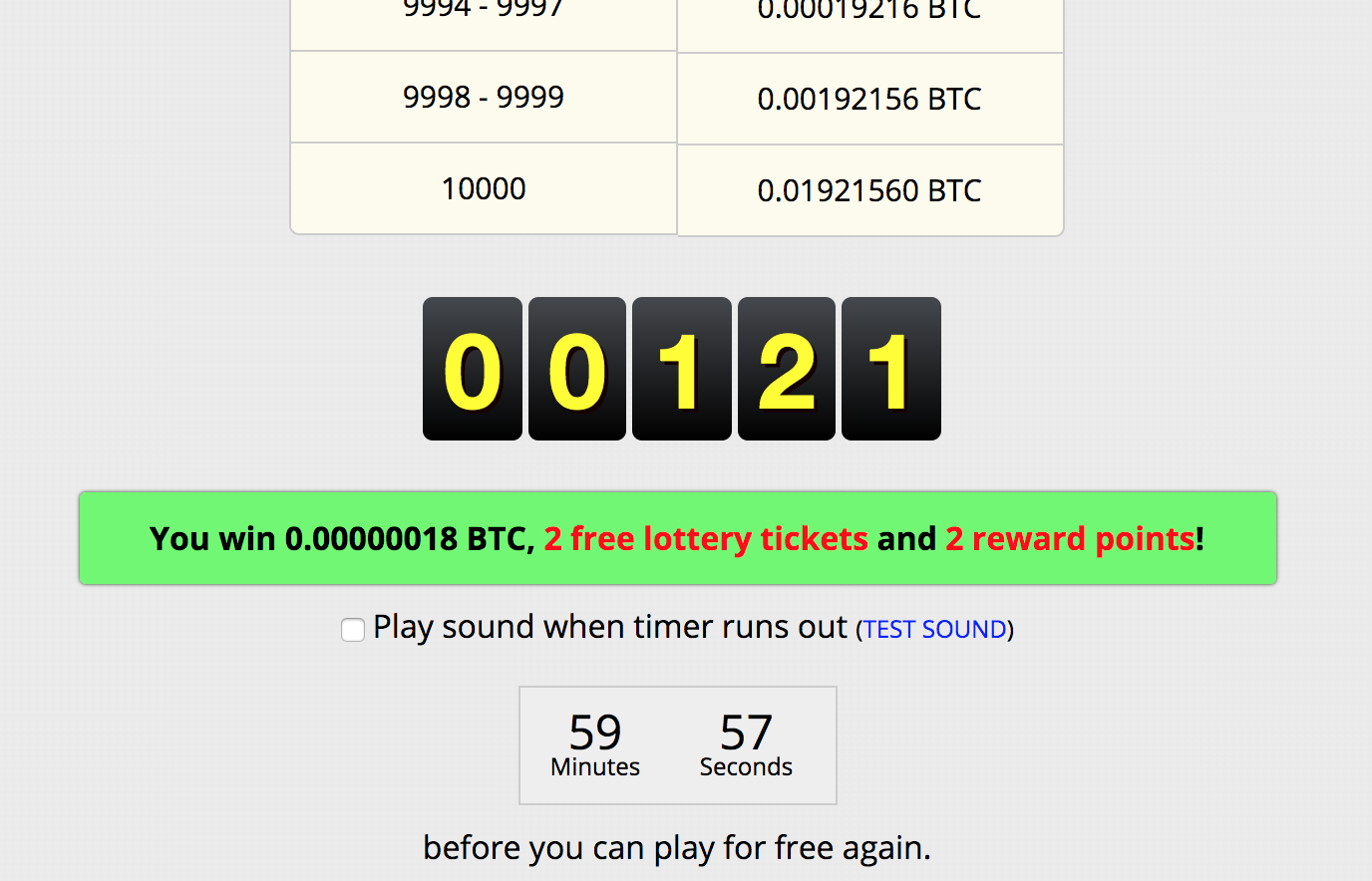 Each lottery rewards one Satoshi!