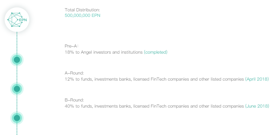 What is special about Epiphany is that the project has decided to not do an ICO (Initial Coin Offering), where the public crowd could participate in to receive EPN tokens. Only a private sale to angel investors and institutions was done, which resulted in 70% of a total of 500,000,000 EPN tokens being sold. The rest of the tokens, which equal to 30% of the total token amount will be distributed to the community (such as through airdrops or contests), consultants, FA institutes as well as the team. Instead the project aims to gain revenues through costs when listing an asset, small withdrawal and trading fees, as well as a service charge for contract trading.
