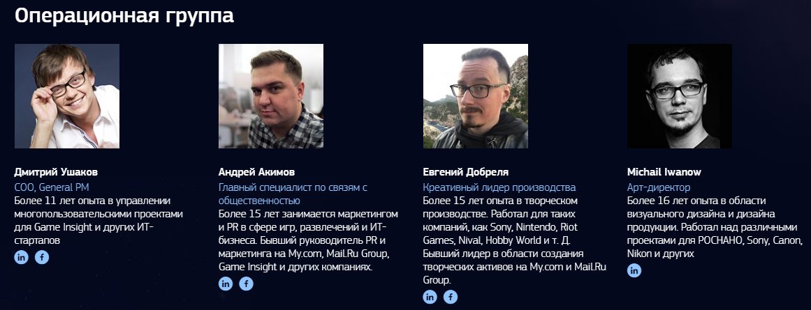 Команда разработчиков включается уже более 150 человек. Это разработчики, эксперты и специалисты из самых разных отраслей и сфер деятельности. Они профессионалы своего дела, поэтому позволяют проекту «ворваться» на рынок с максимальной эффективностью и результативностью.