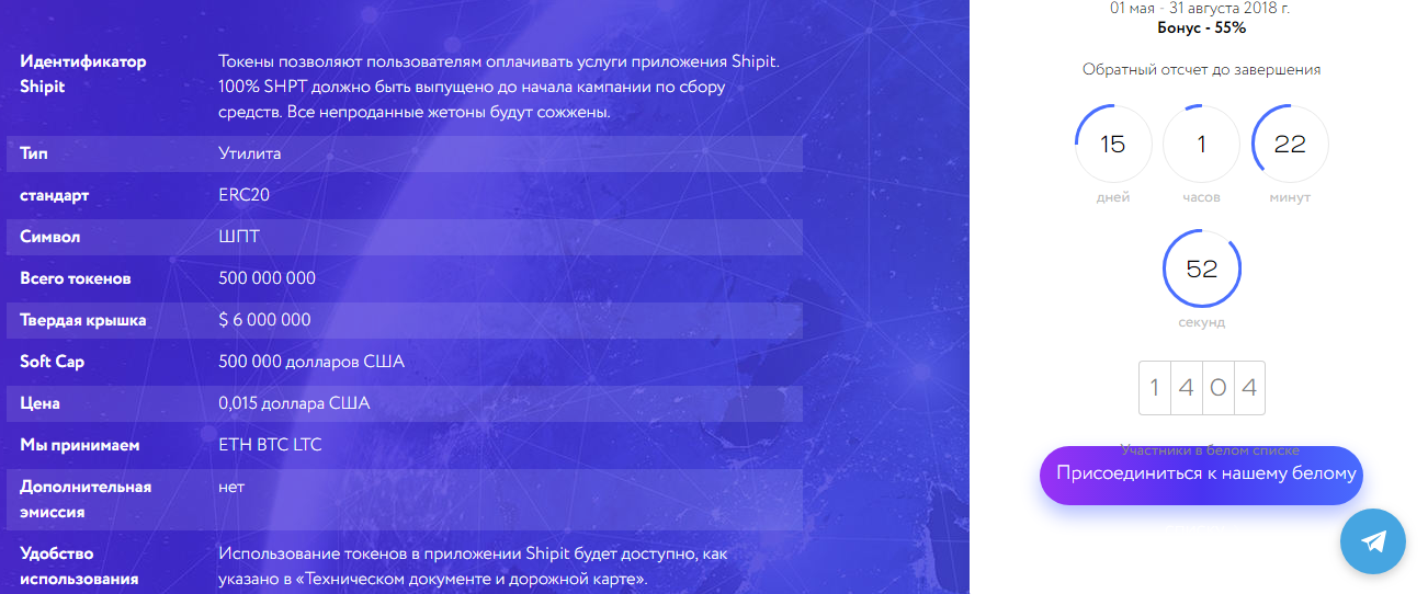 Белая бумага: https://token.shipit.me/files/en/whitepaper.pdf