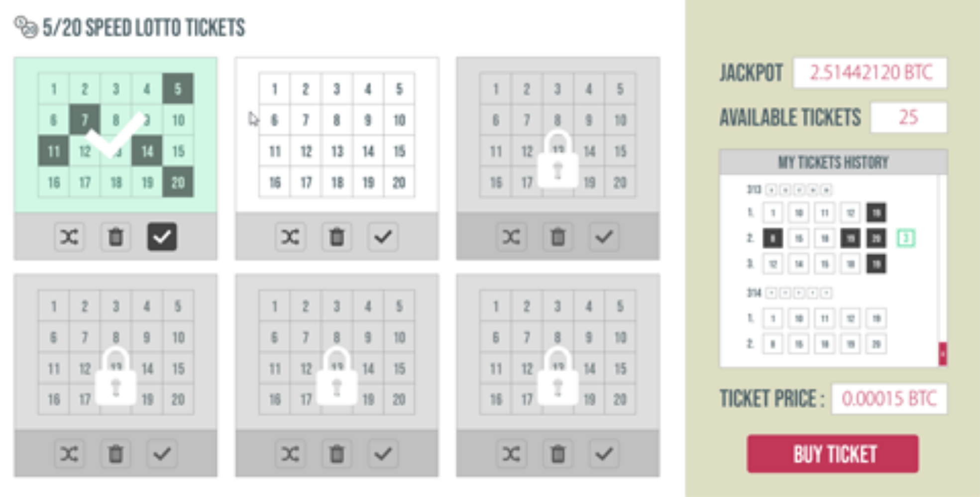 Lottery 20 Speed Lotto Tickets involves the choice of a player 5-digit of 20. If all 5 numbers are correctly guessed, the player gets a jackpot. In this case, funds are also paid from the 2nd to the 4th Fund, after which 20 percent of the remaining amount goes to the next round, and 10 percent are deducted as a Commission fee.