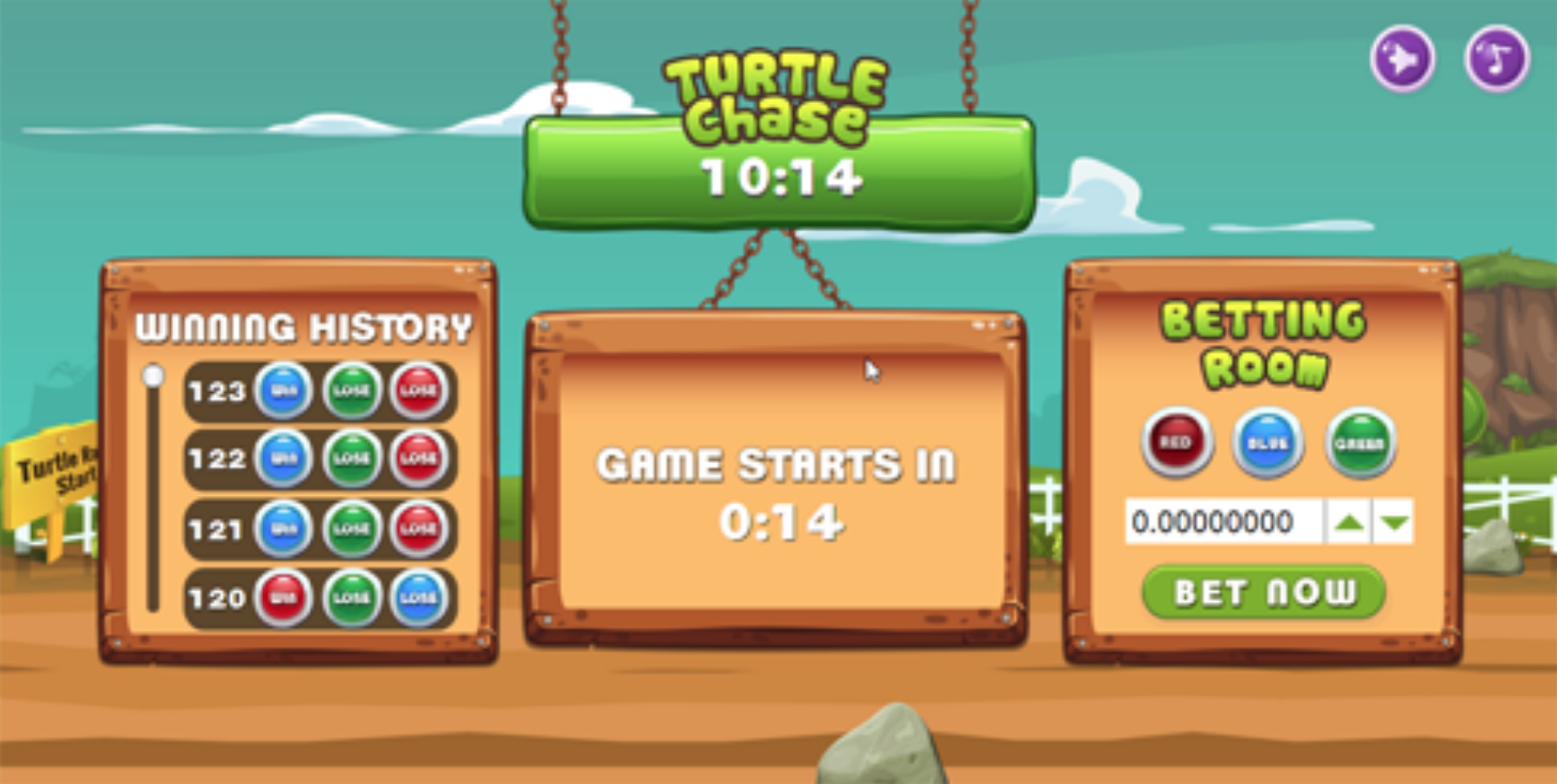 The second Turtle Chase game is a turtle race in which the player has to bet on one of them. The winner will receive a win with a coefficient of 2.97.