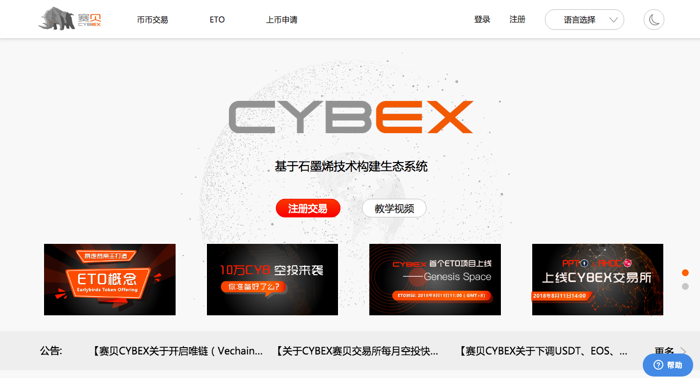 The new version of the official website of CYBEX launched on Jul 20, adding the first ETO project, namely Genesis Space to the ETO zone, meanwhile updating bilingually all information of cryptocurrencies on CYBEX. On the other hand, the new webiste is positively appraised as to overall style and detailed designs.