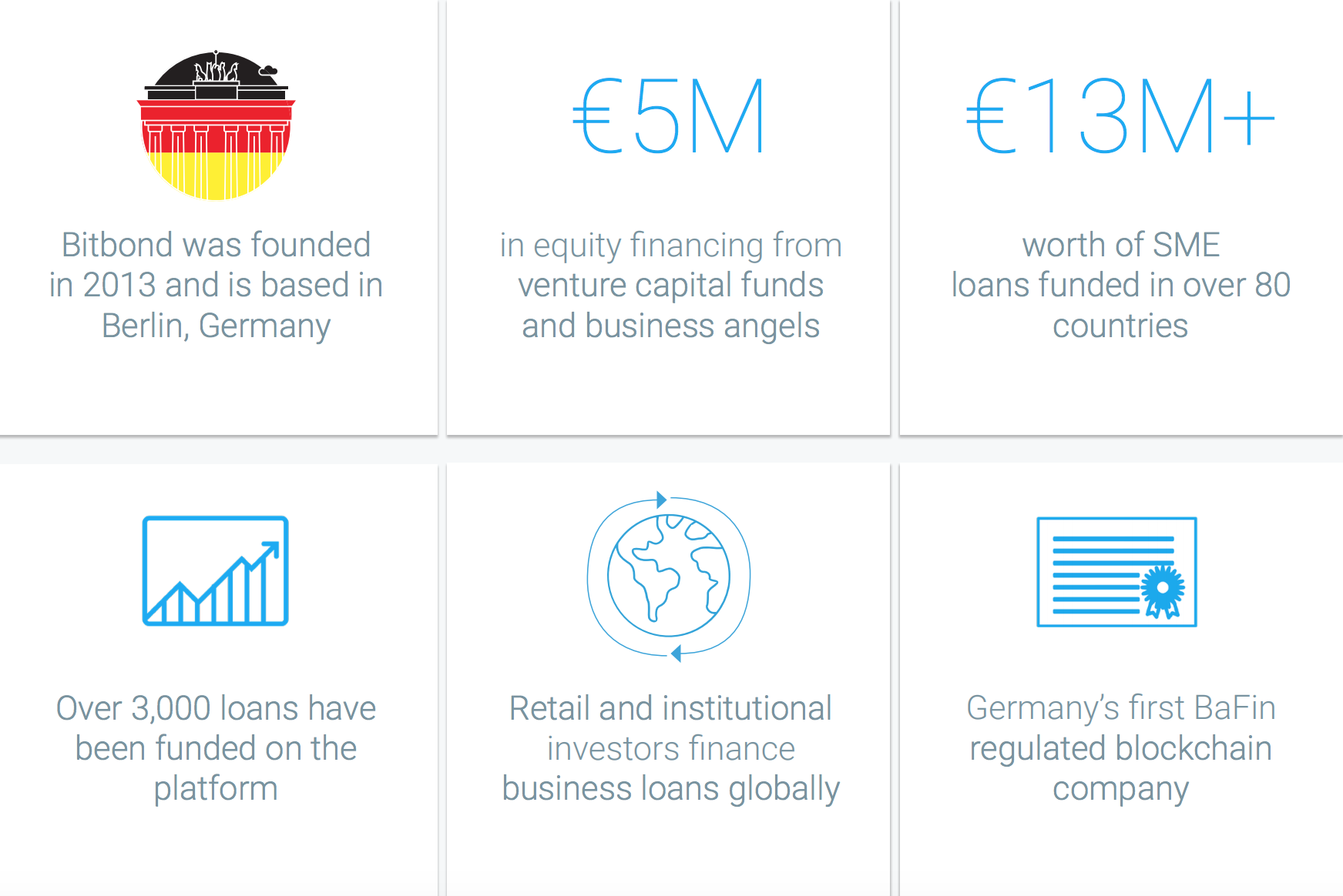 The project which will be discussed today is called – Bitbond. Bitbond is the first decentralized business lending platform operating worldwide in more than 80 countries. The project belongs to Bitbond GmbH, which is officially registered in Berlin (Germany) and has one of the most worthy financial licenses of the country from the BaFin regulator. For the founders of Bitbond it is a great honor and a tribute from the German regulatory authorities. Given the fact that this is the first blockchain platform in Germany, which received this license.