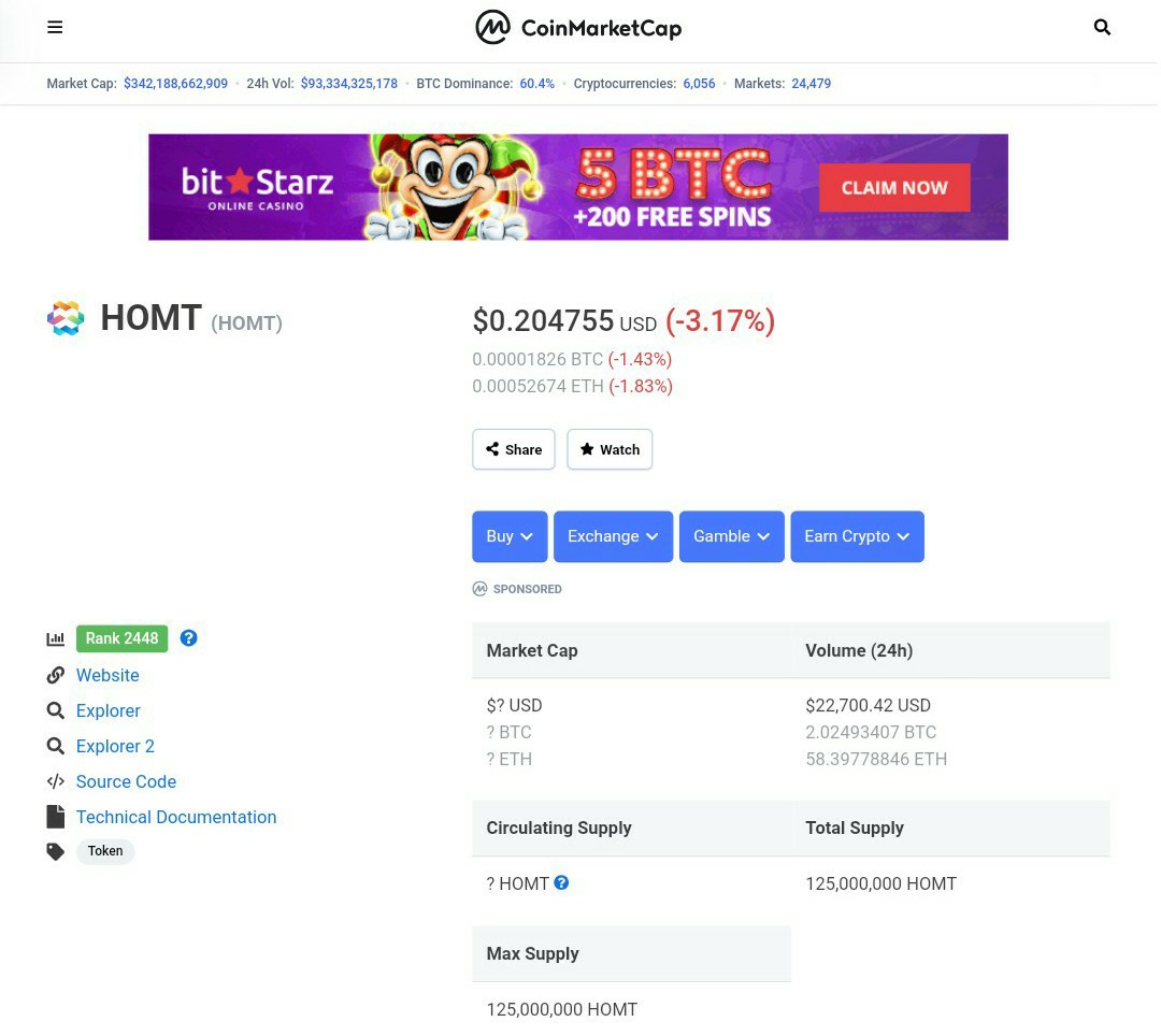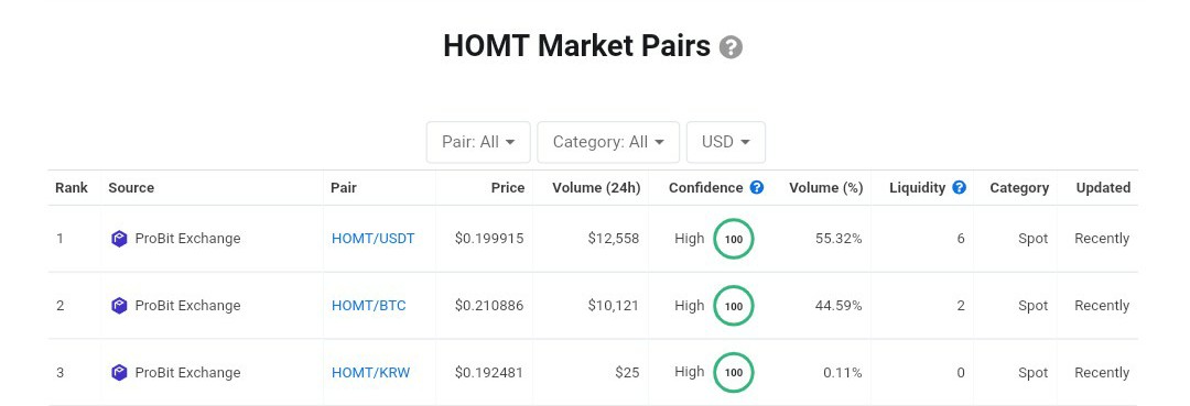 HOM Token (HOMT) is listed on Coinmarketcap and trading on Probit